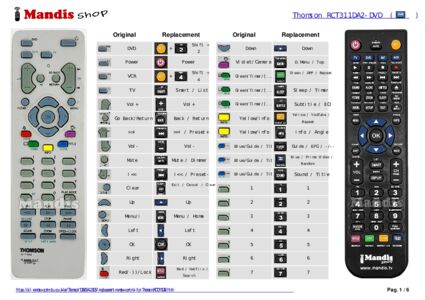 Below, we will show you the correspondence between each button on the original remote control and the button that performs the same function on the replacement remote control. In some cases, you may need to press the SHIFT key before pressing another button to perform certain actions. These additional functions are often not widely used and are included to facilitate understanding of the replacement remote control, or because the original remote control has more buttons than its equivalent.