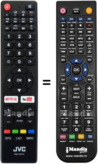 This remote control fully replaces your RM-C3312 and offers all the functions of the original.