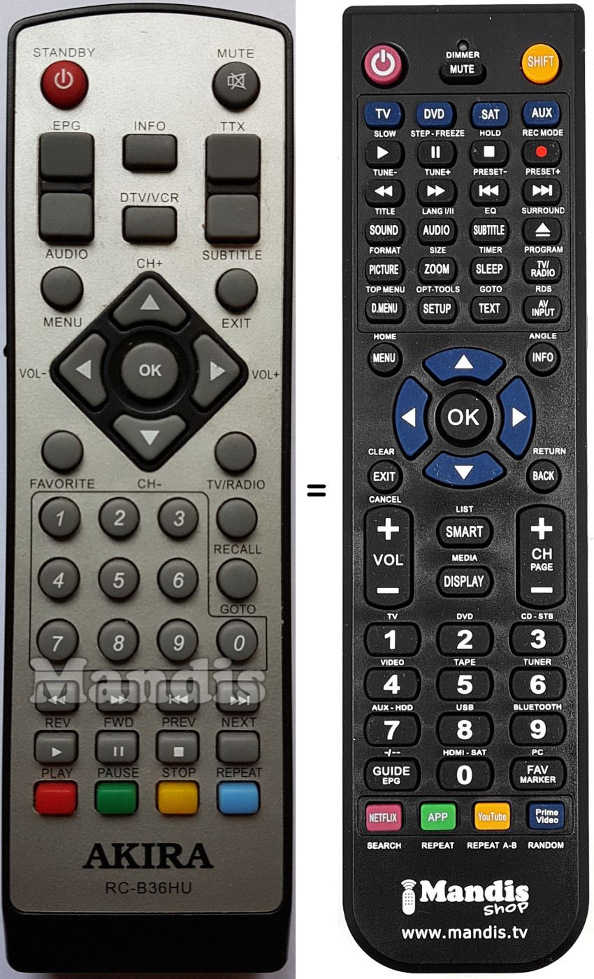 Remote control to replace the original and all its functions.