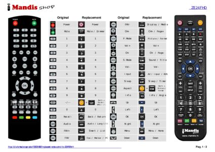 A document is included to help you use the new remote control easily, showing the button correspondence.