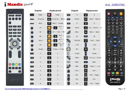 Below, we will show you the correspondence between each button on the original remote control and the button that performs the same function on the replacement remote control. In some cases, you may need to press the SHIFT key before pressing another button to perform certain actions. These additional functions are often not widely used and are included to facilitate understanding of the replacement remote control, or because the original remote control has more buttons than its equivalent.