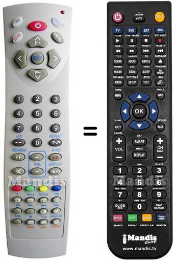 Below, we will show you the correspondence between each button on the original remote control and the button that performs the same function on the replacement remote control. In some cases, you may need to press the SHIFT key before pressing another button to perform certain actions. These additional functions are often not widely used and are included to facilitate understanding of the replacement remote control, or because the original remote control has more buttons than its equivalent.