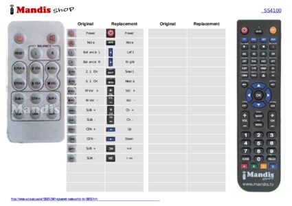 This remote control replaces most of the functions of your SS4100. It is not a universal remote control, but a copy with most of the buttons and functions of your original.
