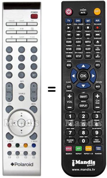 Below, we will show you the correspondence between each button on the original remote control and the button that performs the same function on the replacement remote control. In some cases, you may need to press the SHIFT key before pressing another button to perform certain actions. These additional functions are often not widely used and are included to facilitate understanding of the replacement remote control, or because the original remote control has more buttons than its equivalent.