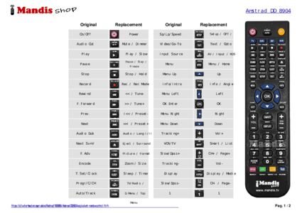 Below, we will show you the correspondence between each button on the original remote control and the button that performs the same function on the replacement remote control. In some cases, you may need to press the SHIFT key before pressing another button to perform certain actions. These additional functions are often not widely used and are included to facilitate understanding of the replacement remote control, or because the original remote control has more buttons than its equivalent.