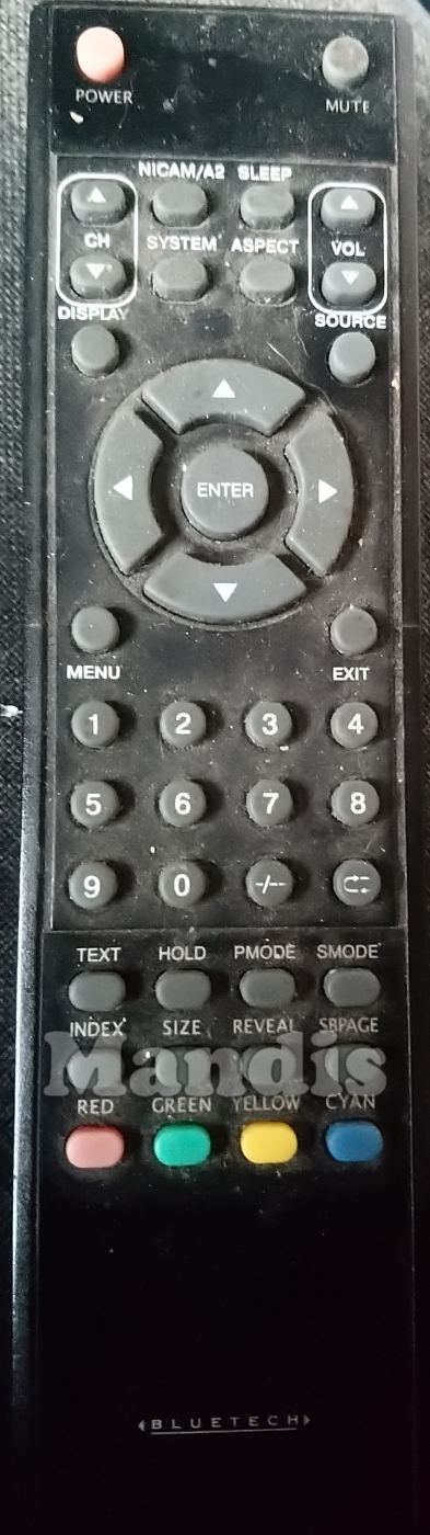 original remote control TQS37E-001 used for televisions for the brand BLUETECH. This is an original remote control.