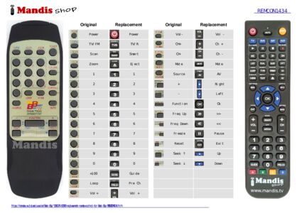 This remote control fully replaces your REMCON1434 and offers all the functions of the original.