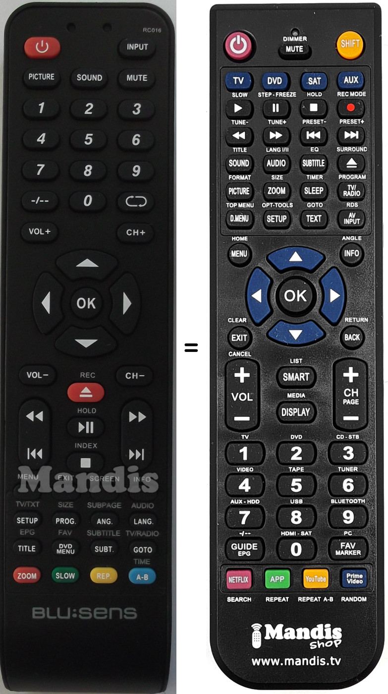 Remote control to replace the original and all its functions.