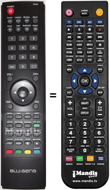 Remote control to replace the original and all its functions.