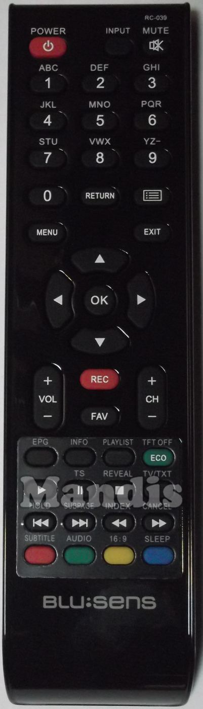 original remote control RC039 used for televisions for the brand Blusens. This is an original remote control.