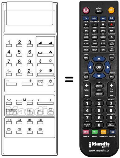 Remote control to replace the original and all its functions.