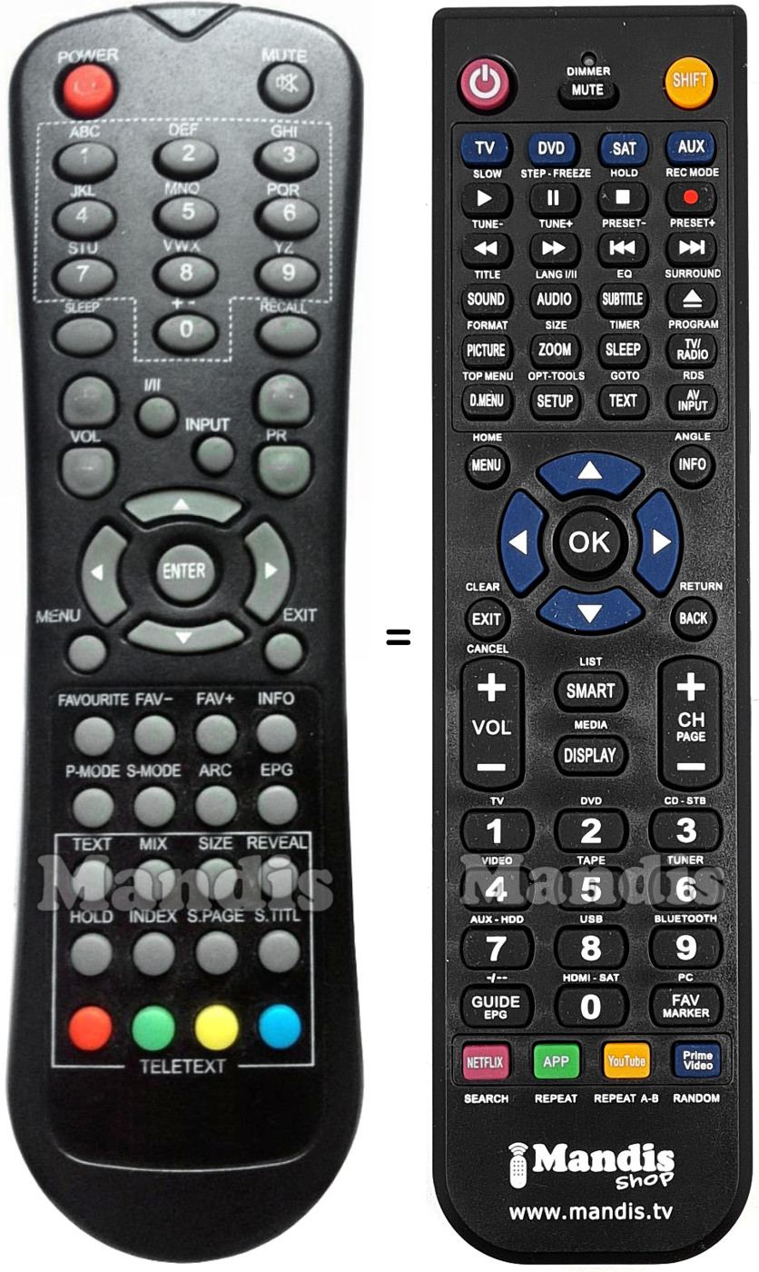 This remote control performs all the functions of the original remote control:
