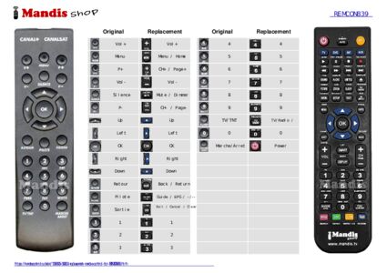 Below, we will show you the correspondence between each button on the original remote control and the button that performs the same function on the replacement remote control. In some cases, you may need to press the SHIFT key before pressing another button to perform certain actions. These additional functions are often not widely used and are included to facilitate understanding of the replacement remote control, or because the original remote control has more buttons than its equivalent.