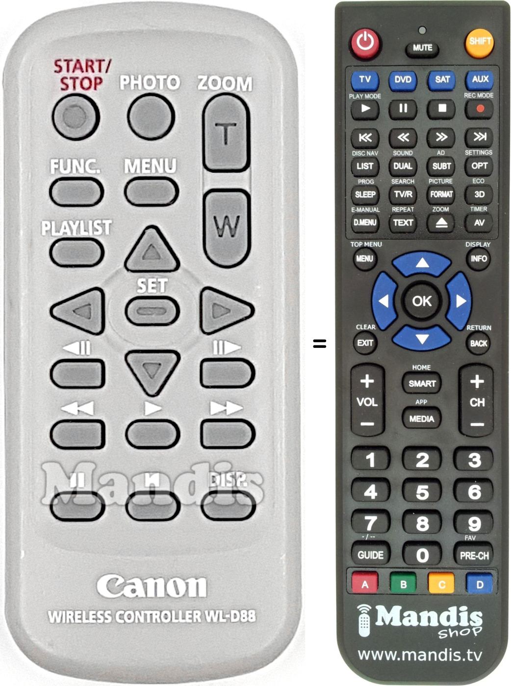 Below, we will show you the correspondence between each button on the original remote control and the button that performs the same function on the replacement remote control. In some cases, you may need to press the SHIFT key before pressing another button to perform certain actions. These additional functions are often not widely used and are included to facilitate understanding of the replacement remote control, or because the original remote control has more buttons than its equivalent.