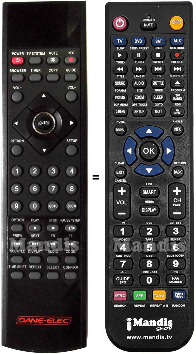Below, we will show you the correspondence between each button on the original remote control and the button that performs the same function on the replacement remote control. In some cases, you may need to press the SHIFT key before pressing another button to perform certain actions. These additional functions are often not widely used and are included to facilitate understanding of the replacement remote control, or because the original remote control has more buttons than its equivalent.