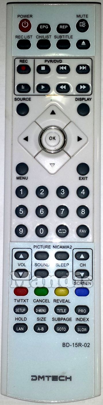 original remote control BD15R02 used for televisions for the brand DMTech. This is an original remote control.