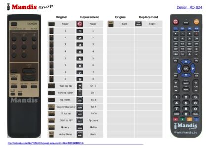 Below, we will show you the correspondence between each button on the original remote control and the button that performs the same function on the replacement remote control. In some cases, you may need to press the SHIFT key before pressing another button to perform certain actions. These additional functions are often not widely used and are included to facilitate understanding of the replacement remote control, or because the original remote control has more buttons than its equivalent.