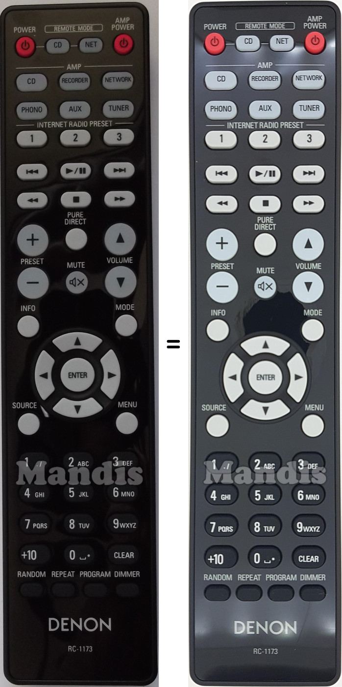 Replacement remote controls that replace in all its functions the remote DENON RC 1173 (943307101180D):