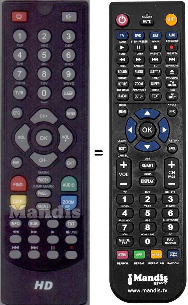 Remote control to replace the original and all its functions. It is not a universal remote but a substitute for the original. You will receive the remote ready to use: you only need to install the batteries. It is not necessary to program it. We offer you our full guarantee that the remote will perform all the functions of the original.