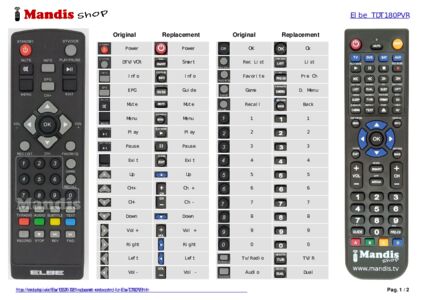 Remote control for Elbe TDT180PVR