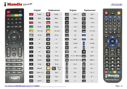 This remote control fully replaces your RT0101HD and offers all the functions of the original.