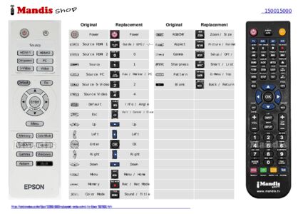 Below, we will show you the correspondence between each button on the original remote control and the button that performs the same function on the replacement remote control. In some cases, you may need to press the SHIFT key before pressing another button to perform certain actions. These additional functions are often not widely used and are included to facilitate understanding of the replacement remote control, or because the original remote control has more buttons than its equivalent.