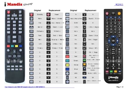 This remote control fully replaces your RC2911 (30074309) and offers all the functions of the original.
