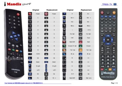 Below, we will show you the correspondence between each button on the original remote control and the button that performs the same function on the replacement remote control. In some cases, you may need to press the SHIFT key before pressing another button to perform certain actions. These additional functions are often not widely used and are included to facilitate understanding of the replacement remote control, or because the original remote control has more buttons than its equivalent.