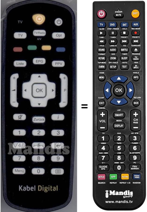 Remote control to replace the original KabelDigital (014350080) and all its functions.