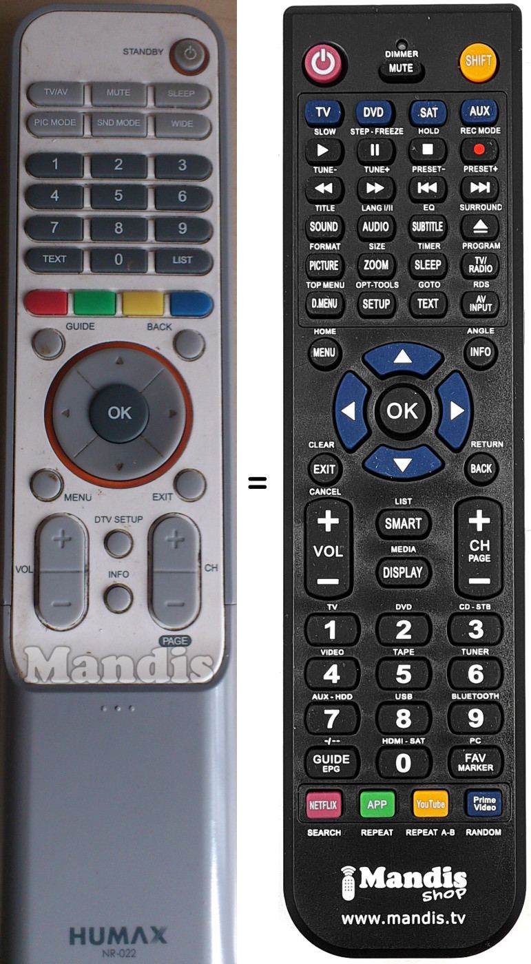 Remote control to replace the original remote NR022 and all its functions.