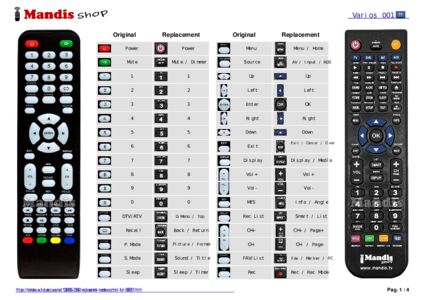 Below, we will show you the correspondence between each button on the original remote control and the button that performs the same function on the replacement remote control. In some cases, you may need to press the SHIFT key before pressing another button to perform certain actions. These additional functions are often not widely used and are included to facilitate understanding of the replacement remote control, or because the original remote control has more buttons than its equivalent.