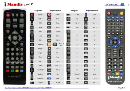 Below, we will show you the correspondence between each button on the original remote control and the button that performs the same function on the replacement remote control. In some cases, you may need to press the SHIFT key before pressing another button to perform certain actions. These additional functions are often not widely used and are included to facilitate understanding of the replacement remote control, or because the original remote control has more buttons than its equivalent.