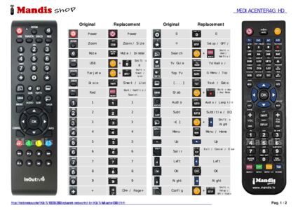 Below, we will show you the correspondence between each button on the original remote control and the button that performs the same function on the replacement remote control. In some cases, you may need to press the SHIFT key before pressing another button to perform certain actions. These additional functions are often not widely used and are included to facilitate understanding of the replacement remote control, or because the original remote control has more buttons than its equivalent.