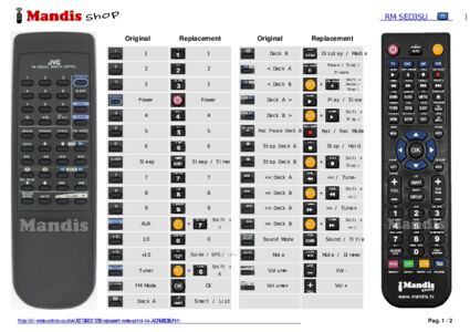 Below, we will show you the correspondence between each button on the original remote control and the button that performs the same function on the replacement remote control. In some cases, you may need to press the SHIFT key before pressing another button to perform certain actions. These additional functions are often not widely used and are included to facilitate understanding of the replacement remote control, or because the original remote control has more buttons than its equivalent.
