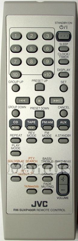 original remote control RMSUXP400R (RM-SUXP400RW2) used for hi-fi systems and av receivers for the brand JVC. This is an original remote control.