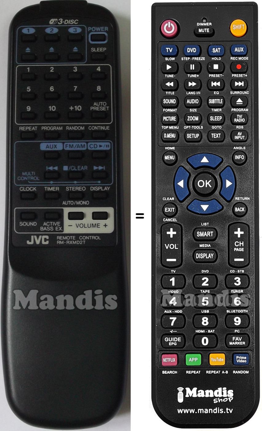 Original remote control JVC RC 4870 (30085964)Original remote control JVC RC 4870 (30085964)Available in stock16.12 € (VAT included)JVCFor Televisions CELED32L0116B3, 32FH153DVD, 10098335 (49278FHDDLED), 10101706 (49287FHDDLED), 10098335 (50FLHMR249BC), ...Original remote control JVC RC 4875 (30087730)Original remote control JVC RC 4875 (30087730)Available in stock16.12 € (VAT included)JVCFor 10097886 (L48F249X3CW-3DU), 10101038 (TE39275N25CXH), 10100397 (D40F287M3), TE 24282 B 30 C 10 E, 10096847 (D39F275N3), ...Original remote control JVC RC-4848 (30091082)Original remote control JVC RC-4848 (30091082)Available in stock19.42 € (VAT included)JVCFor Televisions LUX0142002/01, DLED50272FHDCNTD, 10099063 (LED49FSWB), 10095757 (LUX0142001/02), 10093230 (LUX0155001), ...Original remote control JVC RC 4876 (30088184)Original remote control JVC RC 4876 (30088184)Available in stock17.77 € (VAT included)JVCFor Televisions LT32HG62U, HI4900UHD, LED32HB, LED24HBDVD, LED24DVD164SATSCHWARZ, 10100058 (LED32HD164SATSCHWARZ), LED22FHD161SATWEISS, ...Replacement remote control JVC LT-32HG82UReplacement remote control JVC LT-32HG82UAvailable in stock22.73 € (VAT included)JVCFor LT-32HG82U, LT-32HG82WU, LED32BH55Original remote control JVC RC 1910 (30070046)Original remote control JVC RC 1910 (30070046)Available in stock17.77 € (VAT included)JVCFor Televisions 19 H 8 L 02, LC 40 LE 510 E, 22 L 1334 G, LC 32 SH 130 E, TL-I 26 HD, DF-19LRHDG, 10076336 (DF-19LRHUDG), 22 L 1333 G, ...Original remote control JVC RC45157 (30109080)Original remote control JVC RC45157 (30109080)Available in stock24.38 € (VAT included)JVCFor Televisions LT-24VAH325I, 10138289 (LT-43VA3200), 10138724 (LT-50VA3200), 10138144 (LT-55VAQ8235), 10138147 (LT-50VAQ6235), ...Replacement remote control CELED58SA120B6Replacement remote control CELED58SA120B6Available in stock22.73 € (VAT included)JVCFor CELED58SA120B6, CELED55SA120B6, CELED65SA120B6, CELED50SAFM20B6 (LE-50N3), CELED75SA220B6, BLA32H4142L00EB79KReplacement remote control JVC RM-SUXLP5RReplacement remote control JVC RM-SUXLP5RAvailable in stock22.73 € (VAT included)JVCFor UXG355B, UXG355E, UXG357E, UXLP55, UX-G375E, RMSR774, CA-UXG377, UX-G377, UX-G375A, UX-G395BE, UX-LP5B, UX-G377EOriginal remote control JVC RM-SUXF227DABOriginal remote control JVC RM-SUXF227DABAvailable in stock32.90 € (VAT included)JVCFor Hi-Fi systems and AV receivers 4319648 (UX-F227B), 4605756 (UXF227BDAB)Original remote control JVC RM-MH15GOriginal remote control JVC RM-MH15GAvailable in more than 4 weeks169.52 € (VAT included)JVCFor DLA-X3, DLA-X30, DLA-X90R, DLA-X70ROriginal remote control JVC RM-C1245 (504Q4010106)Original remote control JVC RM-C1245 (504Q4010106)Available in stock24.38 € (VAT included)JVCFor Televisions RM-C1245, LT 19 HA 52 U, LT-32HA72U, LT 40 HG 72 U, LT-24HD7WU, LT 24 HA 72 U, LT 28 HA 52 U, LT 28 HA 72 U, LT42HG82U, ...Replacement remote control JVC RM-C3310Replacement remote control JVC RM-C3310Available in stock22.73 € (VAT included)JVCFor LT-19HA82UReplacement remote control JVC RM-MH15GReplacement remote control JVC RM-MH15GAvailable in stock22.73 € (VAT included)JVCFor DLA-X3, DLA-X30Original remote control JVC RCA249101 (30095593)Original remote control JVC RCA249101 (30095593)Available in stock19.19 € (VAT included)JVCFor Televisions 10118801 (TZ65USN184), 10107909 (LT32VF52K), LT-32VH52K, 10119969 (HY32H4000SW), 10113482 (LT65VU83K), 10120072 (AURUM65UHD), ...Replacement remote control JVC Vestel-RC1900Replacement remote control JVC Vestel-RC1900Available in stock22.73 € (VAT included)JVCFor NSI22DVD901, PS19D101W, PS19D101W 10068790, PS26CTD6 10067932, 1006 41 59, 1006 41 60, 1006 41 64, 1006 5190, 1006 66 16, ...Replacement remote control JVC RC-43157Replacement remote control JVC RC-43157Available in stock22.73 € (VAT included)JVCFor 50HAK6151, 58HAK5750, 32HAE4250, 32HAE2250, 50FIT25HAK6150, 43HAK5750, 32F52HAE2252, 50HAK5750, 55HAK5750, 58HAK6151, ...Original remote control JVC RM-C3604 (30113089)Original remote control JVC RM-C3604 (30113089)Available in stock17.77 € (VAT included)JVCFor Televisions 10139916 (LT-43K8100(A)), 10142480 (LT-55VU3300), 10140070 (LT-65VU3101), 10140035 (LT-43VU3101), 10140770 (LT-32VH5157), ...Replacement remote control JVC RM-SUXF227DABReplacement remote control JVC RM-SUXF227DABAvailable in stock22.73 € (VAT included)JVCFor UX-F427B, UXF227BDAB, UX-F227BReplacement remote control JVC RM-SRVNB70Replacement remote control JVC RM-SRVNB70Available in stock22.73 € (VAT included)JVCFor RVNB70S, RV-NB70SE, RV-NB70, RVNB70BE