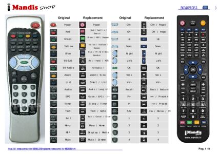 Below, we will show you the correspondence between each button on the original remote control and the button that performs the same function on the replacement remote control. In some cases, you may need to press the SHIFT key before pressing another button to perform certain actions. These additional functions are often not widely used and are included to facilitate understanding of the replacement remote control, or because the original remote control has more buttons than its equivalent.