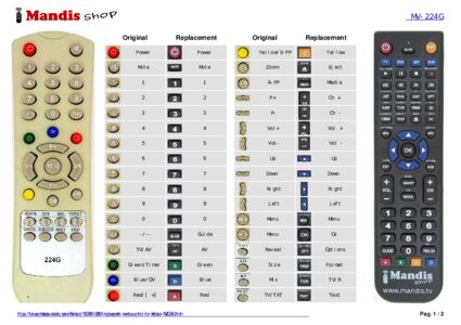 This remote control fully replaces your MV-224G  and offers all the functions of the original.