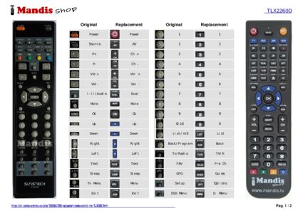 Below, we will show you the correspondence between each button on the original remote control and the button that performs the same function on the replacement remote control. In some cases, you may need to press the SHIFT key before pressing another button to perform certain actions. These additional functions are often not widely used and are included to facilitate understanding of the replacement remote control, or because the original remote control has more buttons than its equivalent.