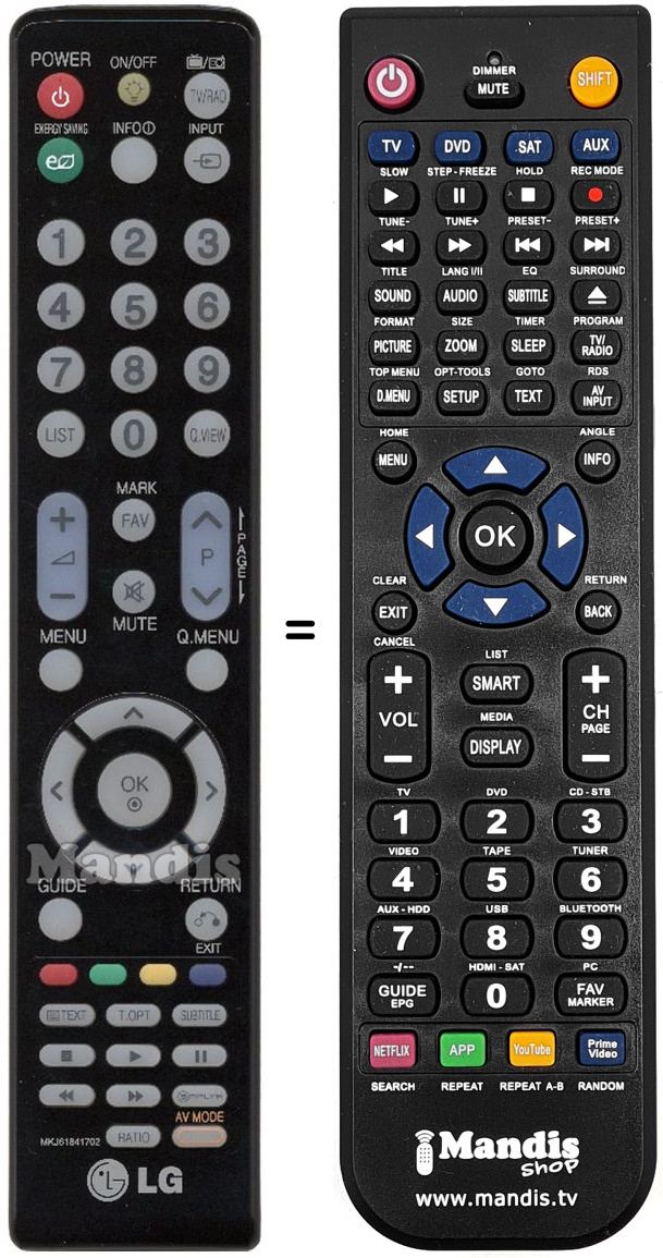 Remote control to replace the original MKJ61841702 and all its functions.