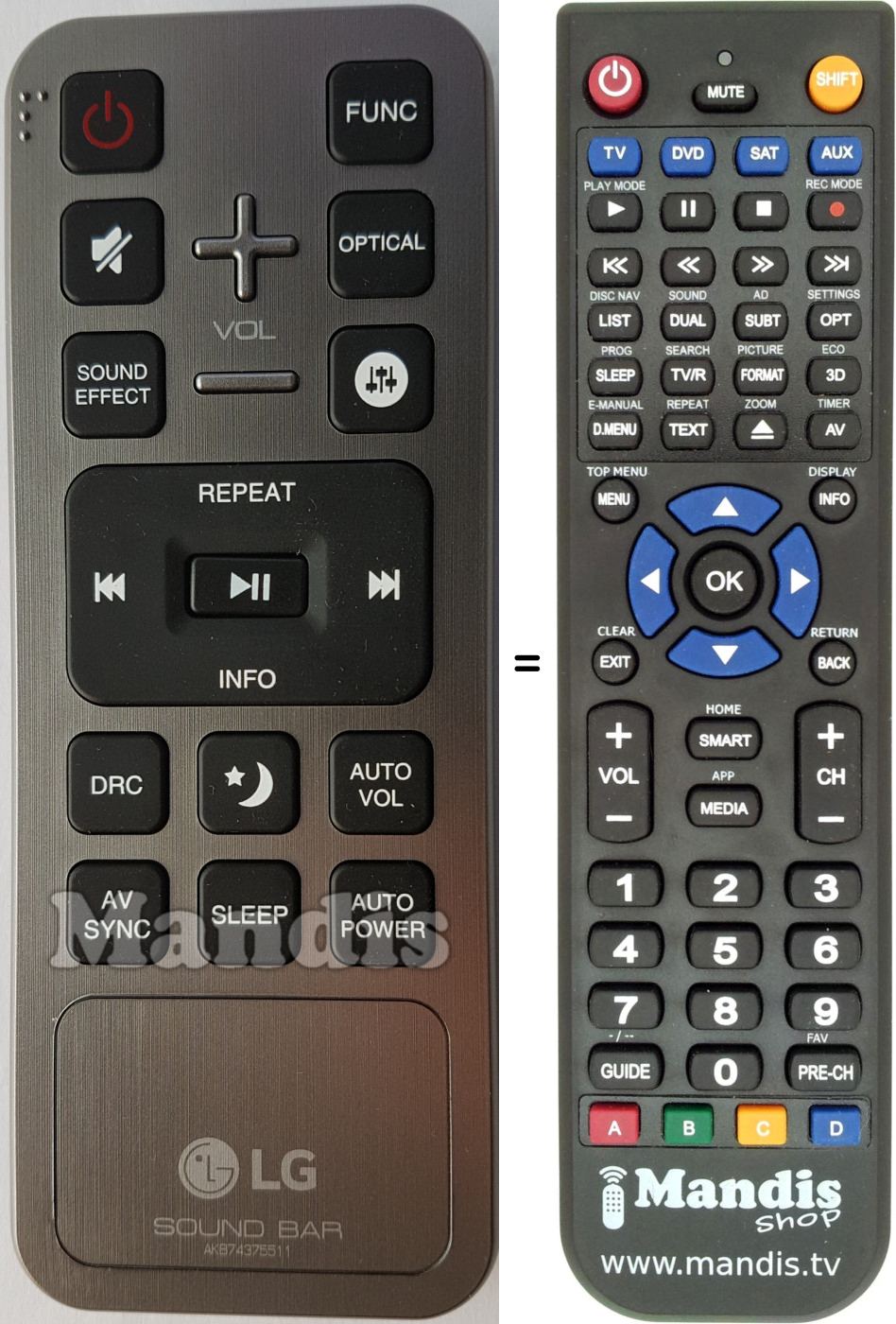 This remote control fully replaces your Sound Bar (AKB74375511) and offers all the functions of the original.