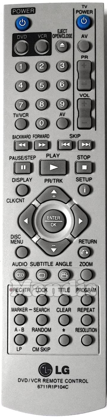 Replacement remote controls that replace in all its functions the remote LG 6711R1P104C: