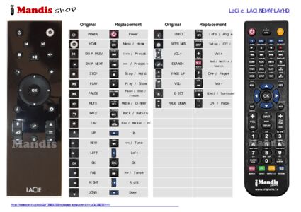Below, we will show you the correspondence between each button on the original remote control and the button that performs the same function on the replacement remote control. In some cases, you may need to press the SHIFT key before pressing another button to perform certain actions. These additional functions are often not widely used and are included to facilitate understanding of the replacement remote control, or because the original remote control has more buttons than its equivalent.