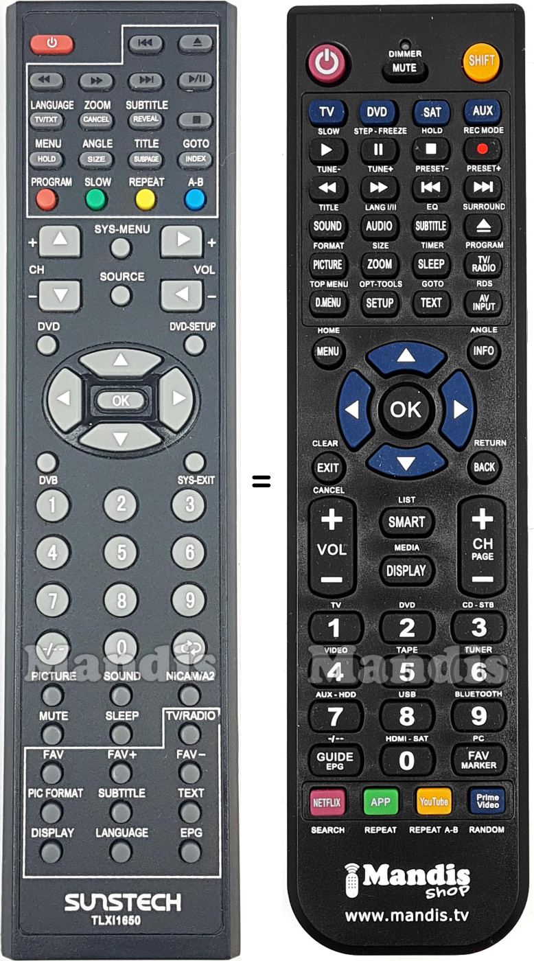 This remote control fully replaces your TLXI1650 and offers all the functions of the original.