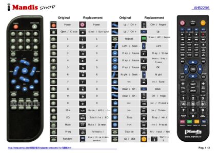 This remote control fully replaces your AHB2296 and offers all the functions of the original.