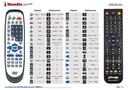 Below, we will show you the correspondence between each button on the original remote control and the button that performs the same function on the replacement remote control. In some cases, you may need to press the SHIFT key before pressing another button to perform certain actions. These additional functions are often not widely used and are included to facilitate understanding of the replacement remote control, or because the original remote control has more buttons than its equivalent.