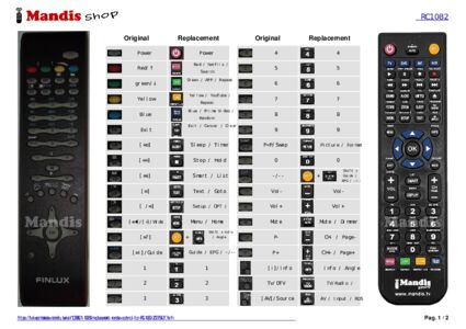 Below, we will show you the correspondence between each button on the original remote control and the button that performs the same function on the replacement remote control. In some cases, you may need to press the SHIFT key before pressing another button to perform certain actions. These additional functions are often not widely used and are included to facilitate understanding of the replacement remote control, or because the original remote control has more buttons than its equivalent.