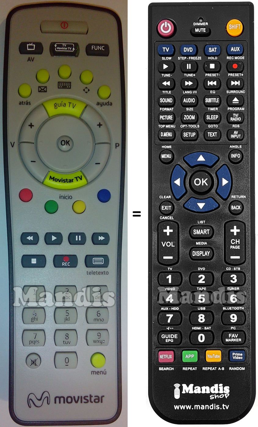 This remote control fully replaces your Movistar-1 and offers all the functions of the original.