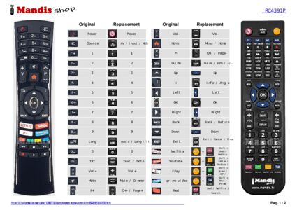 This remote control fully replaces your RC4391P (30101763) and offers all the functions of the original.