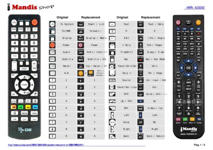 A document is included to help you use the new remote control easily, showing the button correspondence.
